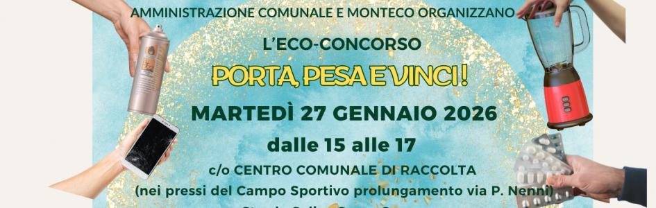 L’Eco Concorso “Porta Pesa e Vinci!”, organizzato dall'Amministrazione Comunale in collaborazione con Monteco S.p.A. torna a Salice S.no con l’obiettivo di promuovere l'uso del Centro Comunale di Raccolta e correggere gli errori della Raccolta Differenziata incentivando la cittadinanza ad una corretta differenziazione dei rifiuti e stimolandone maggiormente l'impegno mediante una competizione virtuosa a premi.